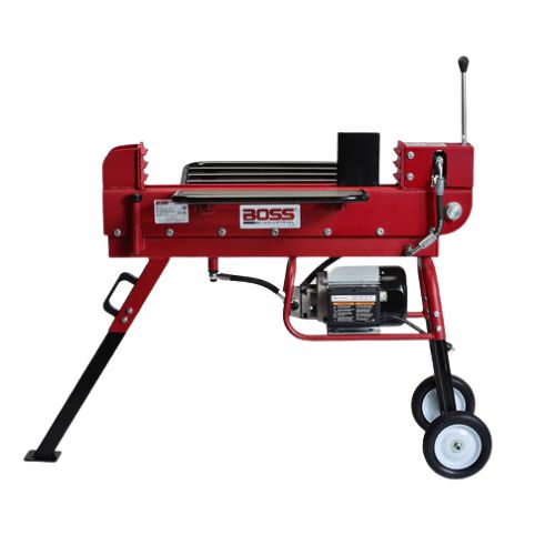 Our 10-ton log splitter includes a 5.25-inch wedge, which when combined with our 10 Ton hydraulics makes easy work of any log.  Our patented hydraulic system and one-handed operation make Boss Industrial electric log splitters stand out from the rest of the pack.  With the Boss Industrial 10 Ton Professional Compact Log Splitter, you will split wood like a pro and keep your fireplace full all winter.